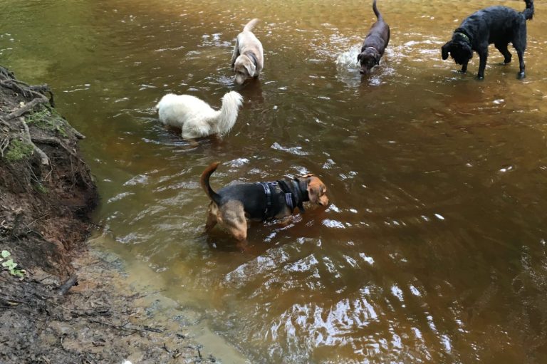 An warmen Tagen verbringen wir gerne Zeit an umliegenden Gewässern, in denen die Hunde baden und schwimmen können.
