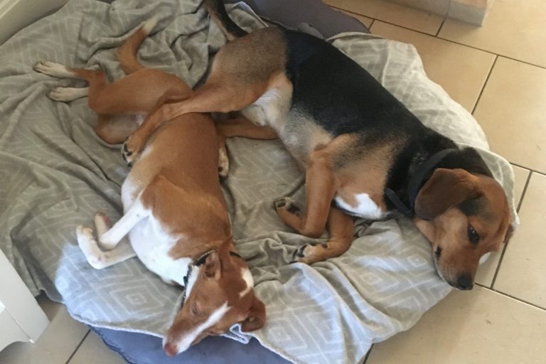 Nach der ausgiebigen Gassi-Tour ruhen wir uns im beheizbarem Hundehaus aus.
